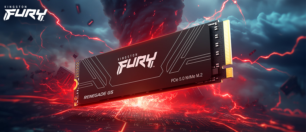 Kingston Fury Renegade G5, jossa on PCIe Gen5 x4 -ohjain, 3D TLC NAND ja virtaa säästävä DDR4 DRAM välimuisti — tämä SSD on erinomainen valinta pelaajille, harrastajille ja muille käyttäjille, jotka etsivät äärimmäistä suorituskykyä.