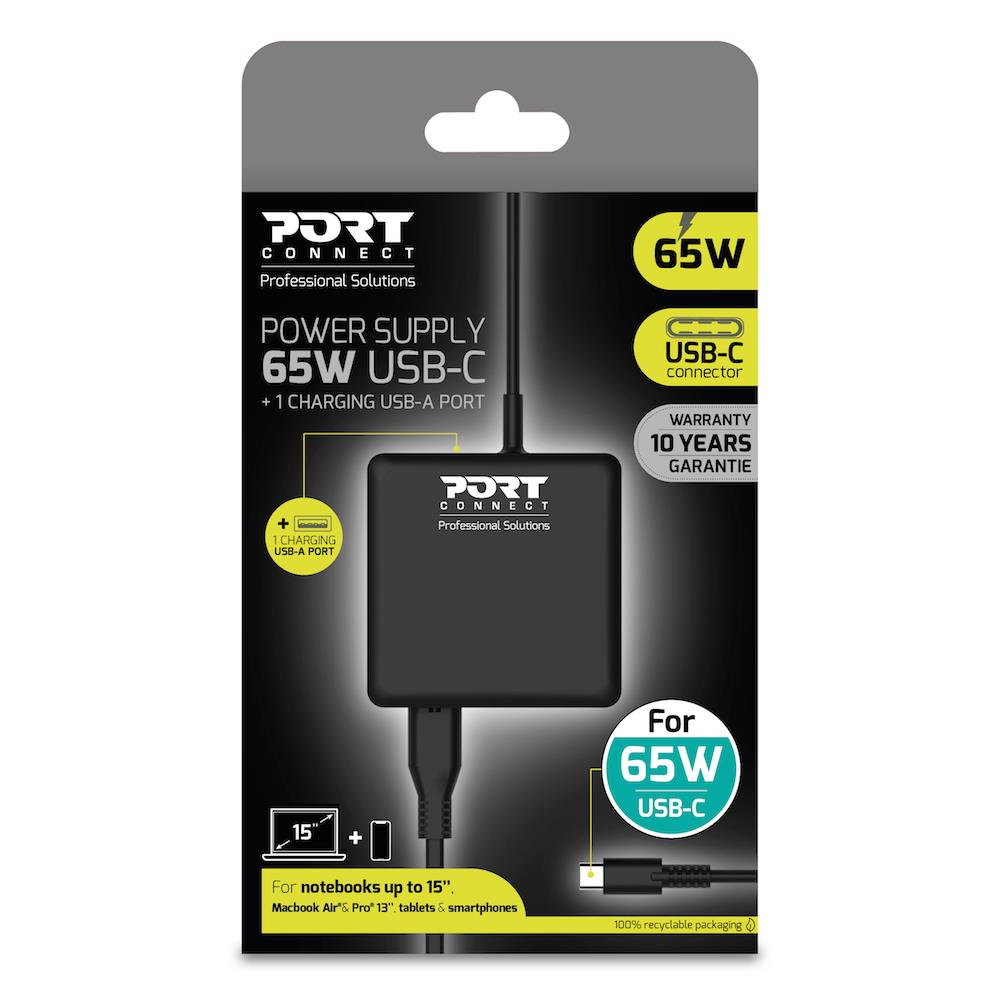 This USB-C charger from the new generation of power supplies is made of reliable and durable quality and allows you to charge your computers, tablets, and smartphones efficiently. It is compatible with all devices with a USB-C charging port and provides fast charging thanks to its 65W power.