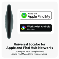 Universal locator for every device, everywhere. The HyperShield™ Universal Locator is a compact, clip-on Bluetooth tracker that keeps your essentials safe and always within reach. Compatible with both Apple® Find My and Find Hub* networks, it delivers seamless tracking across iOS and Android devices. With a 50-foot Bluetooth range, loud sound alerts, and last-known-location tracking, it makes finding misplaced items quick and hassle-free. Built for keys, bags, and luggage, the HyperShield Universal Locator is a simple way to keep your belongings within reach.