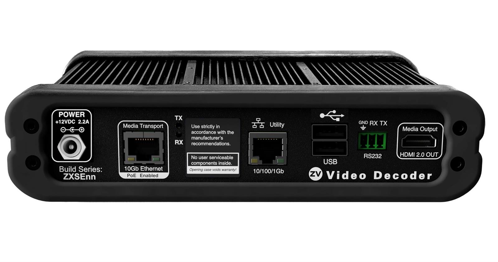 Z4KC2XS−D is an HDMI 2.0 Decoder that is part of the ZyPer4K product line. It supports IP streaming over 10Gbit/copper PoE+ up to 4KP60 4:4:4 resolution with embedded audio and HDCP 2.3 encryption at zero−frame latency. USB supported between ZyPer4K−XS/XR devices. Video compatible with any ZyPer4K Encoder. AC power supply is included but other cables are not.