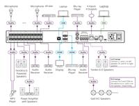 AFM−20DSP−AEC includes multi−channel DSP, AEC (Acoustic Echo Cancellation), mini USB, built−in 2x60W @ 8Ω and 1x120W @ 70V / 100V power amplifier, 4x4 Dante interface, HDMI embedding and de−embedding, USB, and S/PDIF. The comprehensive and user−friendly graphic interface makes configuring every detail of your audio system intuitive and easy.