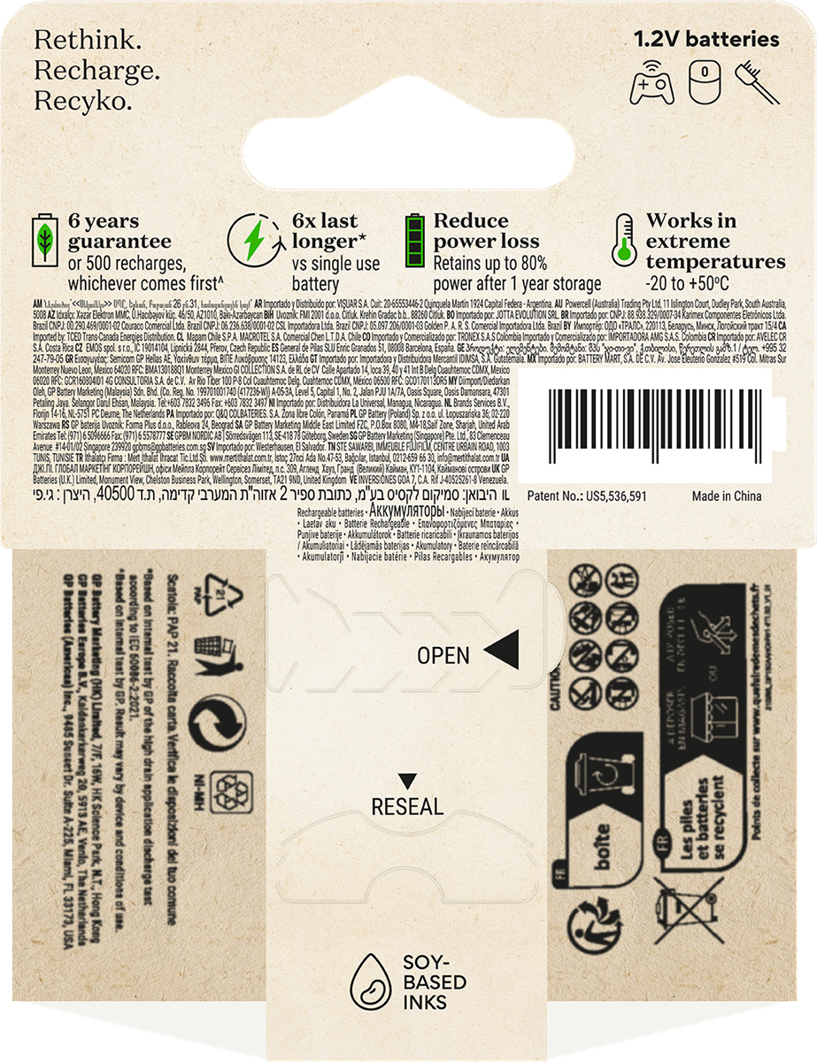 ReCyko AA 2100 mAh batteri är ett Svanenmärkt laddningsbart batteri som är utvecklat för ditt vardagliga användande. De är laddade vid köp och redo att användas direkt ur förpackningen. Till skillnad från engångsbatterier så kan Recyko användas vid låga temperaturer, ända ned till - 20°C. Batteriet är dessutom skapat med mer än 10% återvunna material och över 90% av batteriet, inklusive förpackning är återvinningsbart.