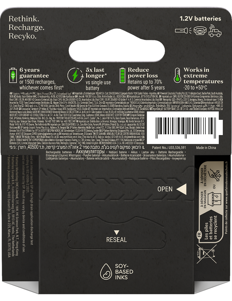 Vi introducerar det nya, avancerade ekosystemet av laddningsbara batterier, batteriladdare och laddockor från GP ReCyko. Med sin optimala prestanda, smarta funktioner och stiliga design, så kommer det nya sortimentet hjälpa dig avstå från tusentals av engångsbatterier - vilket sätter mindre press på miljön och sin plånbok.