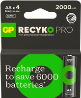 GP Recyko Pro AA-batteri, 2000mAh, 4-pack