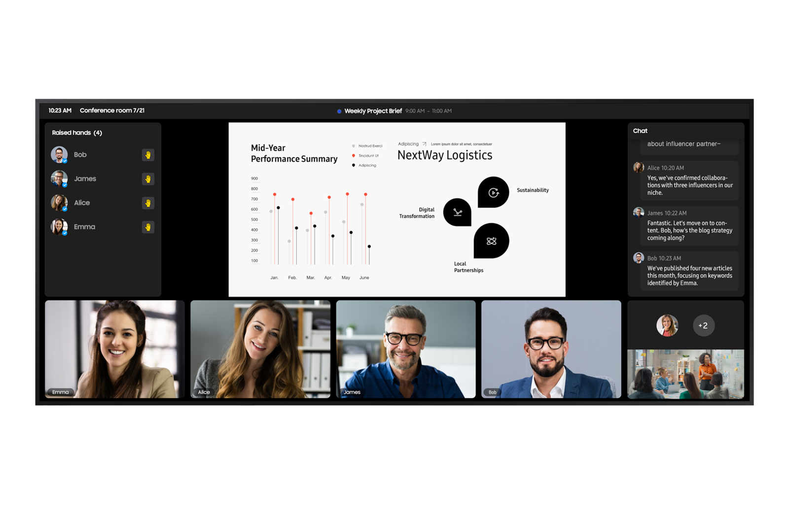 Experience a new level of collaboration with Samsung’s 21:9 ultra-wide 5K display. The expansive screen delivers crystal-clear visuals and vibrant colors, perfect for meetings where every detail matters. Its ultra-wide format allows for seamless multitasking, displaying content, video feeds, and chat side by side. Designed to elevate any workspace, this 5K display brings clarity and productivity to every conference room.