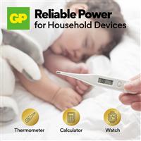 GP Ultra A76 batterie har en lång livslängd och håller i över 3 år vid förvaring i en sval och torr miljö. Det ger pålitlig kraft till hushållsenheter som termometrar, miniräknare och klockor. För ökad säkerhet levereras det i en barnsäker förpackning och är förseglat för att förhindra läckage.