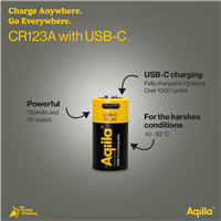 Aqiila Uppladdningsbart USB-C Lithium batteri CR123A 2-pack