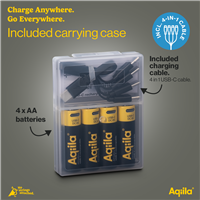 Aqiila AA USB-C uppladdningsbara batterier levererar 1,5V-utgång, vilket ger din utrustning den prestanda den är byggd för. Varje set med fyra batterier levereras med en 4-i-1 laddningskabel och ett resefodral, så att du kan ladda var du än är – utan en stor laddare. Fulladdade på bara 2 timmar, med låg självurladdning och tydlig LED-indikator, är dessa batterier gjorda för utelivet. Tillförlitliga, återanvändbara och alltid redo för pannlampor, radio och andra AA-drivna nödvändigheter.