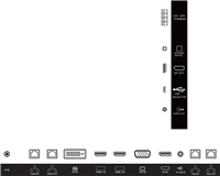 - Gap pad x3, IR sensor cable (1.8m), Quick start guide, Remote control and AAA batteries, RJ45/RS232 converter, Wire Clamper (x3), Power cord, DP Cable, RJ45 Cable, Edge alignment pin (x2), Edge alignment Kit-1, Edge alignment Kit-2 x2