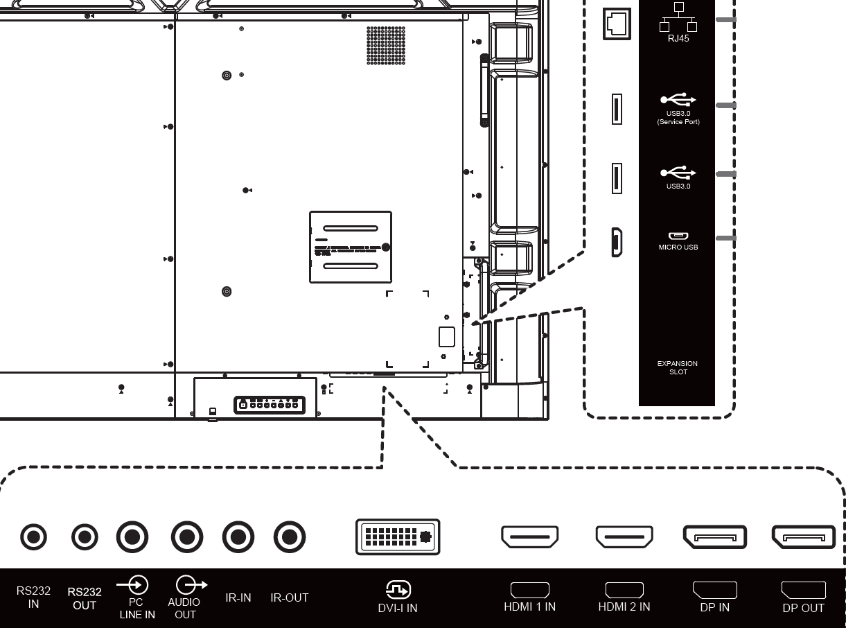- RS232 daisy-chain Cable, Philips logo (x1), AC Switch Cover, USB Cover (x1), Screws, AC Power Cord, IR sensor cable (1.8 m) (x1), Quick start guide, Remote control and AAA batteries, RS232 Cable, Wi-Fi module, Wire Clamper (x3)
