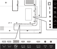 - Philips logo (x1), AC Power cord, AC Switch Cover, IR sensor cable (1.8 m) (x1), Quick start guide (x1), Remote control & AAA batteries, RS232 cable, RS232 daisy-chain cable, USB Cover and screw x1, Wire Clamper (x3)