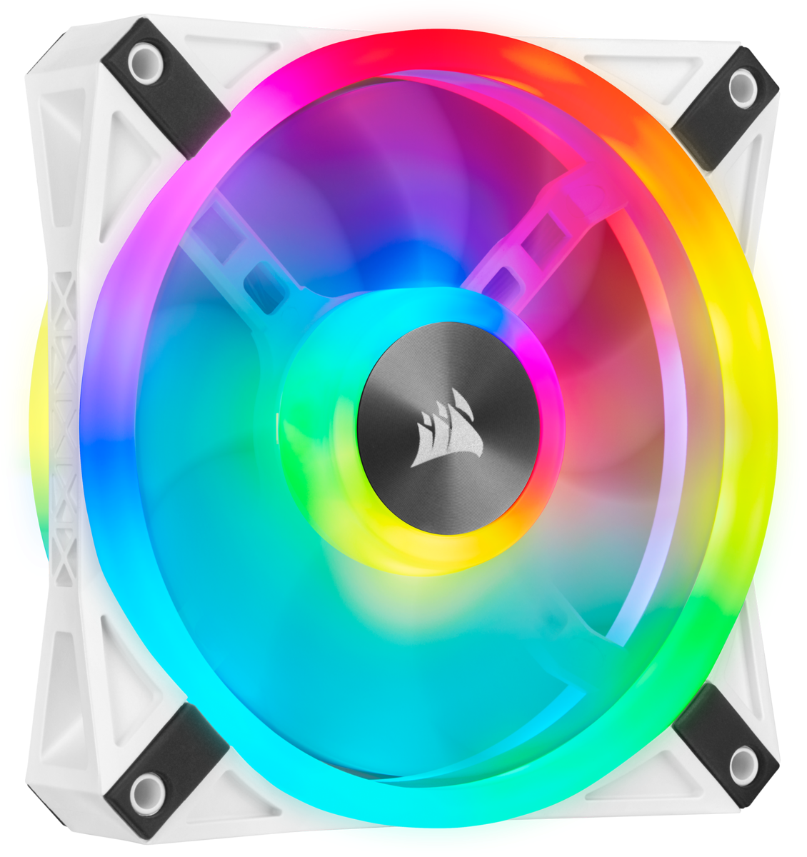 Give your PC spectacular lighting from any angle with a CORSAIR iCUE QL120 RGB PWM White fan, equipped with 34 individually addressable RGB LEDs across four distinct light loops in a brilliant white housing.