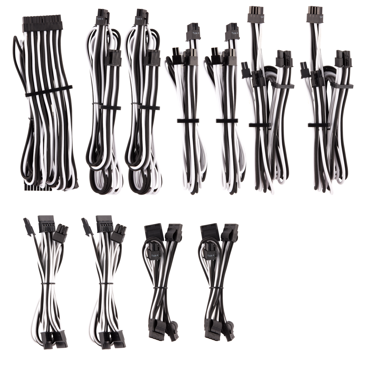 The CORSAIR Premium Individually Sleeved Type 4 Gen 4 Pro Kit includes everything you need to fully upgrade your PSU cables to flexible paracord sleeve, available in seven different colors and patterns.
