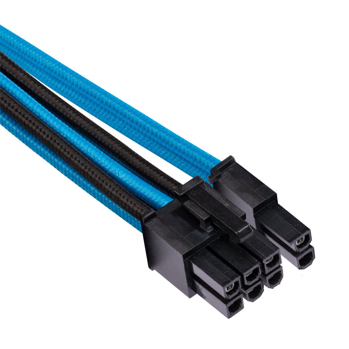 The CORSAIR Premium Individually Sleeved PCIe Type 4 Gen 4 cables combine premium paracord sleeving and a heatshrink-less finish with wide compatibility for CORSAIR Type 4 Power Supplies.
