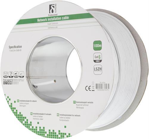 DELTACO asennuskaapeli, U/UTP Cat6, LSZH, 100 m kela, 250 MHz, Delta-sertifioitu, valkoinen