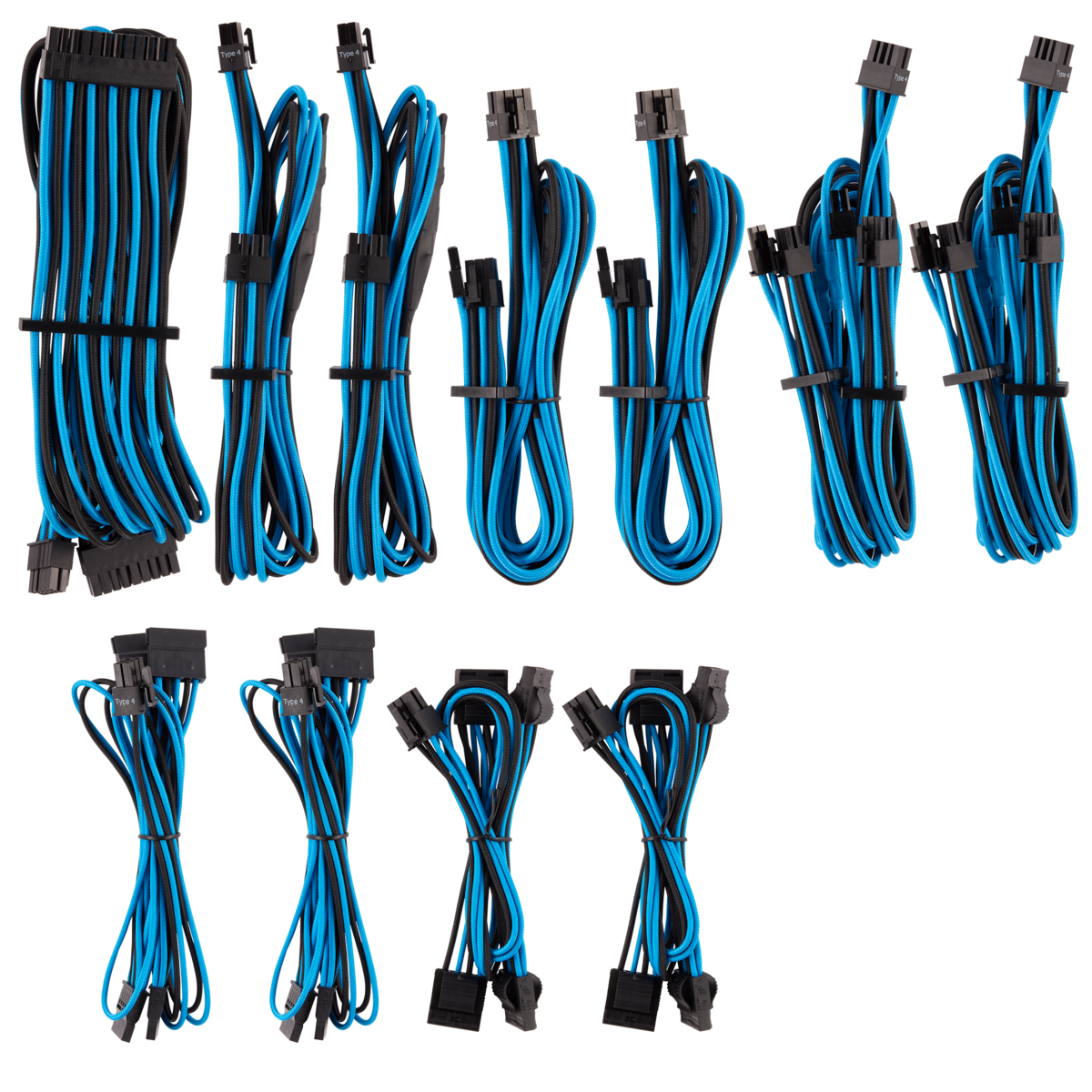 The CORSAIR Premium Individually Sleeved Type 4 Gen 4 Pro Kit includes everything you need to fully upgrade your PSU cables to flexible paracord sleeve, available in seven different colors and patterns.
