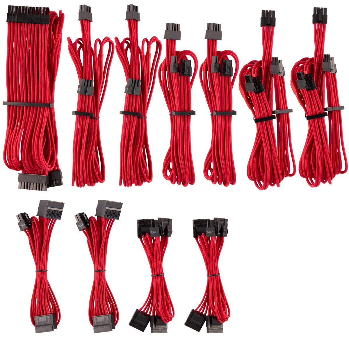 The CORSAIR Premium Individually Sleeved Type 4 Gen 4 Pro Kit includes everything you need to fully upgrade your PSU cables to flexible paracord sleeve, available in seven different colors and patterns.