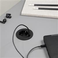 With the Powerdot Midi PM62, you get charging both in the form of a power outlet and a USB-C charger of 30W. It is easily mounted through the table top in a 60 mm hole and is easily and securely screwed into place with a threaded ring under the board, no electrician needed.