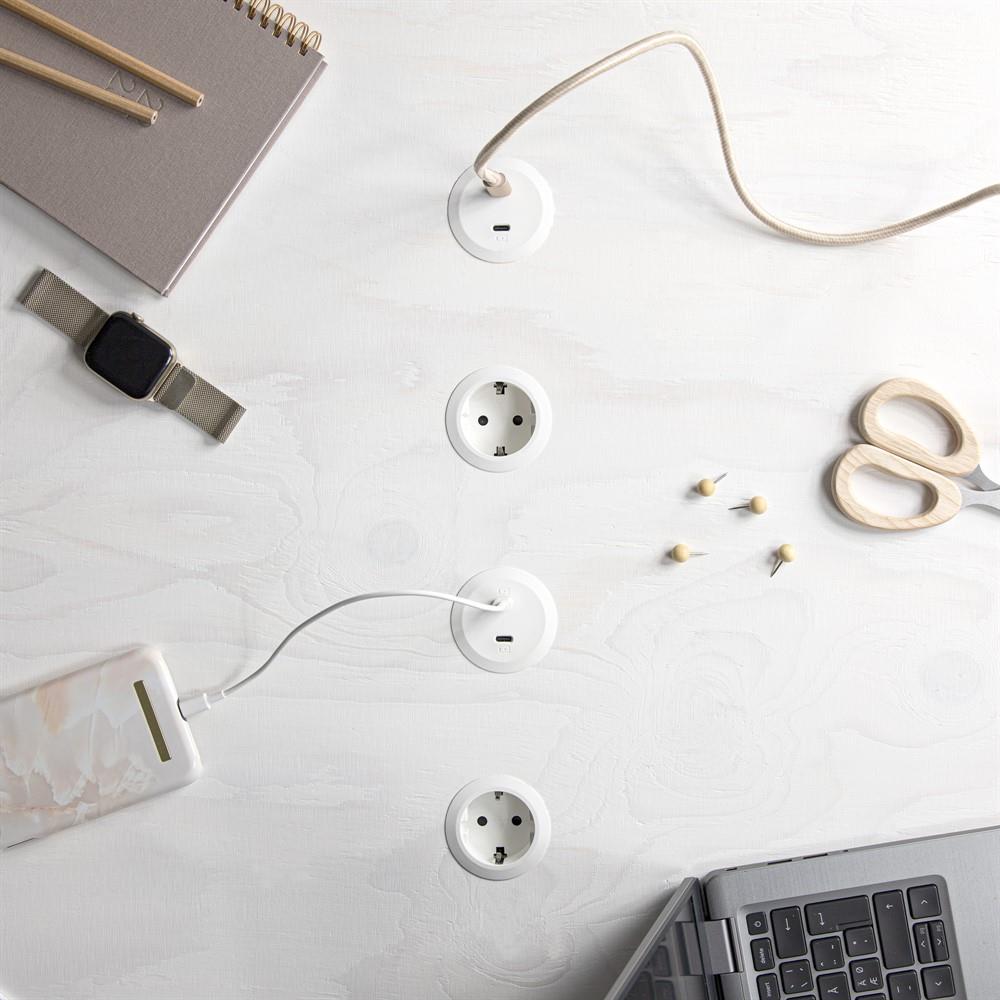 Powerdot Mini – an elegant power solution to fit your every need. The integrated power socket gives you access to charging where you need it, when you need it in a simple and graceful way with minimal effort. With its compact design Powerdot Mini is easily integrated in desks, side tables and seating furniture - the possibilities are endless!