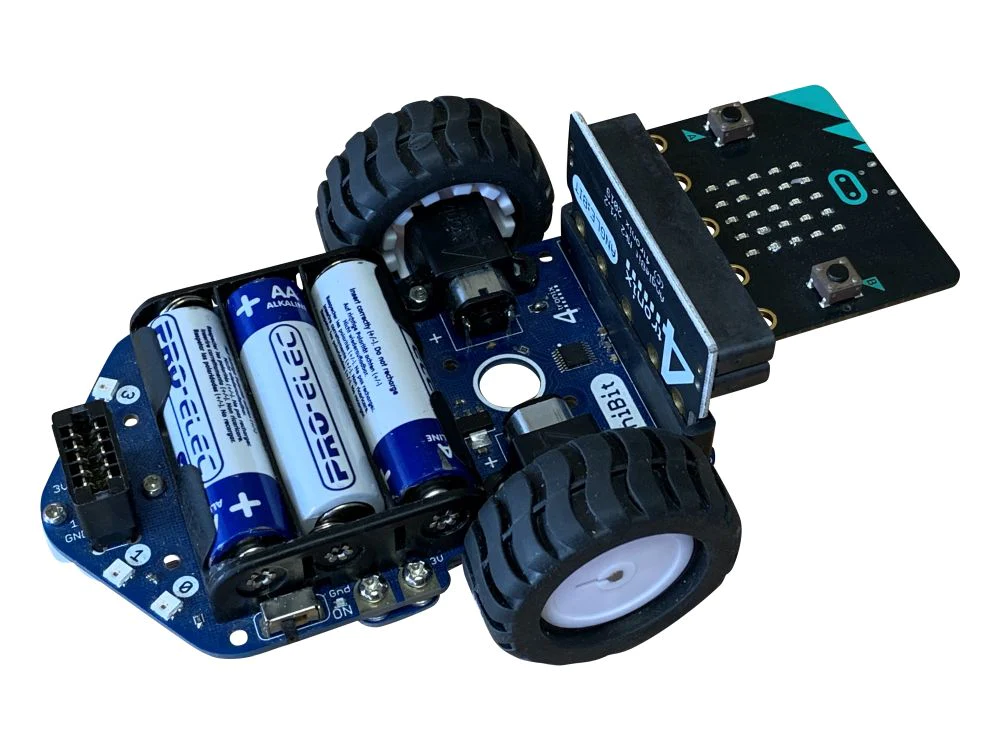As an added bonus, there are 2 connectors on the board so that you can insert the micro:bit either way round. This allows you to decide whether you want the LEDs facing forwards or backwards (or up or down).