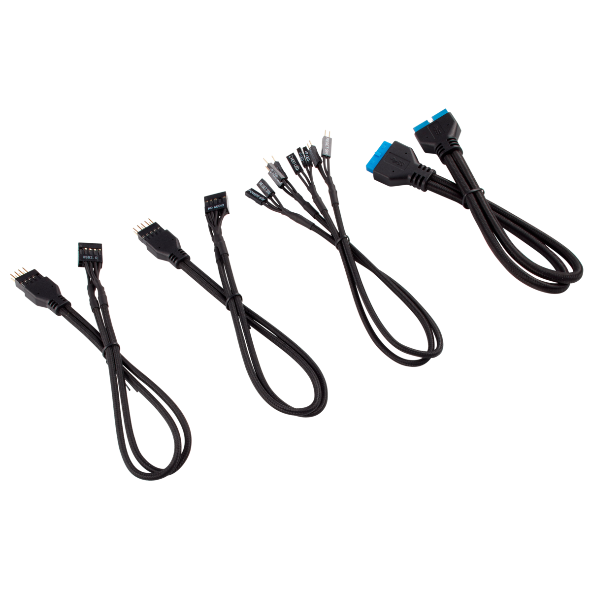 The CORSAIR Premium Individually Sleeved Front Panel Extension Kit completes your PC build in style. Extend and tidy your PC’s front panel connection to your motherboard with individual 30cm extension cables that add the finishing touch.